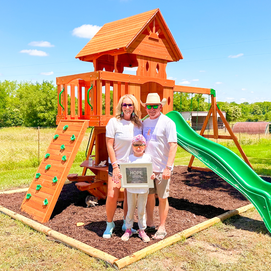 We are a childhood cancer foundation that builds hope for families by providing hospital Ready Bags at diagnosis and backyard play structures during treatment. Ready Bags include everything you may need for unexpected hospital stays along your journey and are available nationwide. Playhouses and playsets are available in select areas as we work to reach more families throughout the U.S. To be eligible for a play structure, you must have a child in active treatment for pediatric cancer who is age 10 or under.